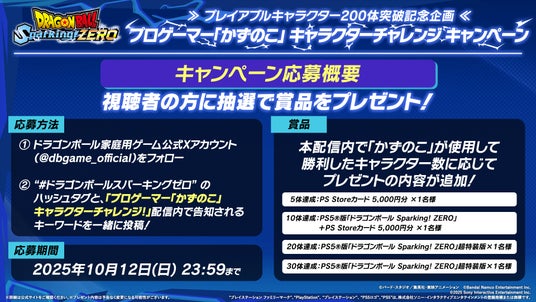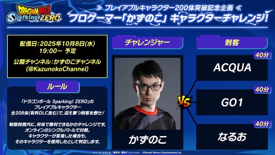 さらに、プレイアブルキャラクターが200体を突破したことを記念したライブ配信、『プロゲーマー「かずのこ」キャラクターチャレンジ』が、かずのこチャンネル(https://www.youtube.com/@KazunokoChannel)にて、2025年10月8日(水) 19:00より、配信決定!