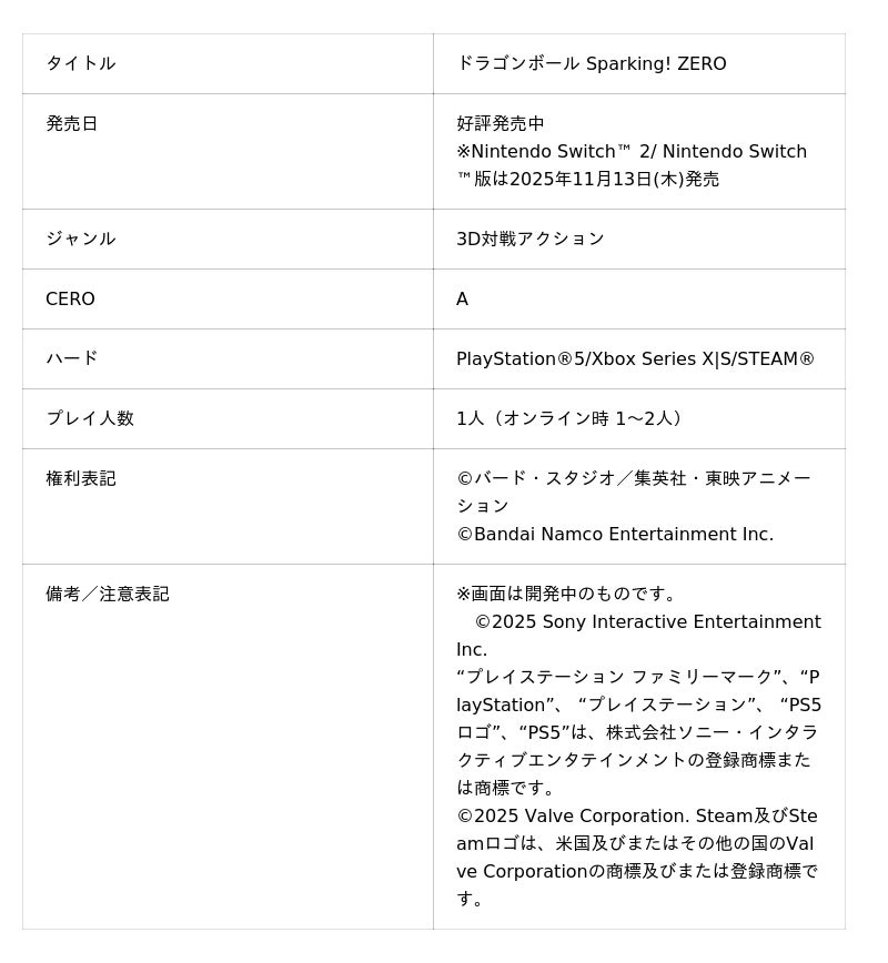 ■「ドラゴンボール Sparking! ZERO」 公式サイト:https://dbsz.bn-ent.net