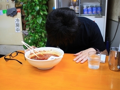 店長いわく、三種類の唐辛子を油で炒めているので余計に辛さがにじみ出ているそうだ。店内には達成者の写真がたくさん飾られていたが、そのほとんどが2倍の挑戦者。初来店で6倍になんて挑戦する人はいないと言っていた。