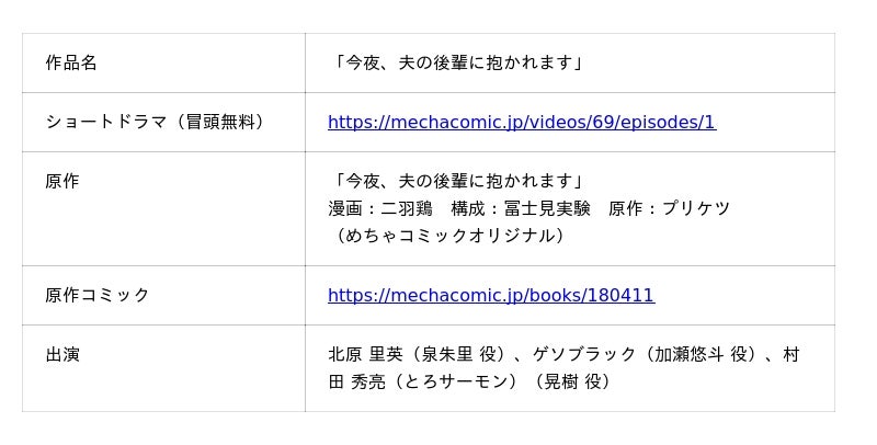 今後も「めちゃコミックオリジナル」の世界を広げる取り組みとして、実写ショートドラマを続々と配信してまいります。新たな展開にぜひご期待ください。