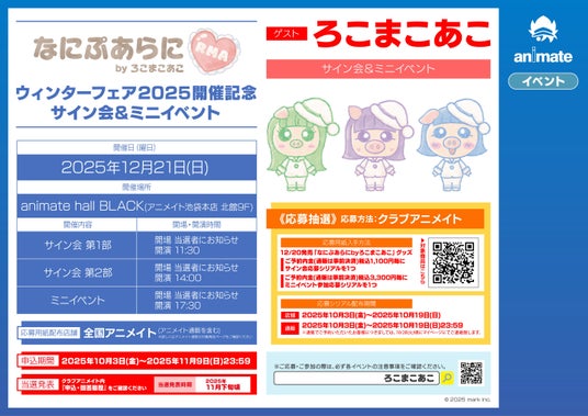 特典がもらえる「なにぷあらにbyろこまこあこ」ウィンターフェア2025を全国のアニメイト店舗と通販にて開催!