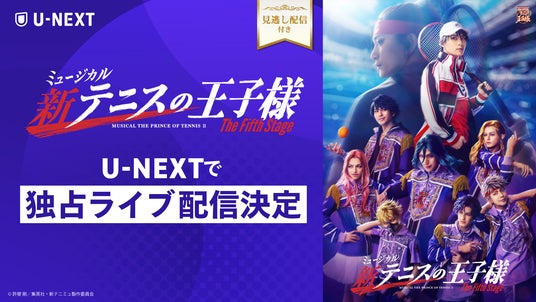 USEN&U-NEXT GROUPの株式会社U-NEXT(本社:東京都品川区、代表取締役社長:堤 天心)が運営する動画配信サービス「U-NEXT」は、2025年10月3日(金)より開催される「ミュージカル『新テニスの王子様』The Fifth Stage 」を独占でライブ配信いたします。ライブ配信の対象となるのは、10月13日(月・祝)12:30/17:30東京公演、11月16日(日)12:30/17:30東京凱旋公演【大千秋楽】の計4公演です。