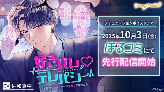 株式会社ボルテージ(本社:東京都渋谷区 代表取締役:津谷 祐司)は、シチュエーションボイスドラマレーベル「Honey Mellow」の新シリーズ「好きバレ」シリーズの第1弾「好きバレ(ハート)テレパシー ~不愛想プログラマーの最推しになったら~」 (CV.佐和真中)を電子コミックストア「ぼるコミ」にて10月3日(金)より先行配信を開始したことをお知らせいたします。