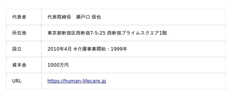 ●ヒューマンライフケア ウェブサイト:https://human-lifecare.jp
