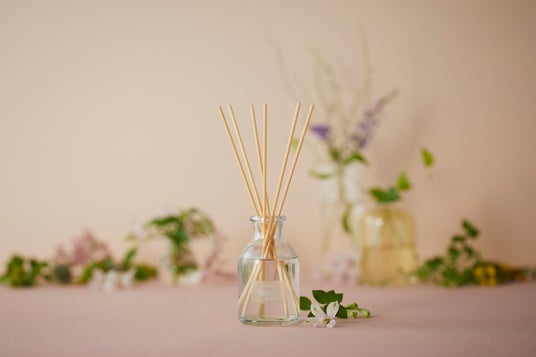シンプルな透明のガラス瓶とナチュラルな色のスティックで、インテリアやお部屋の空間に馴染みやすいデザインです。その人にとっての快適なリラックス空間に馴染むような見た目にこだわりました。