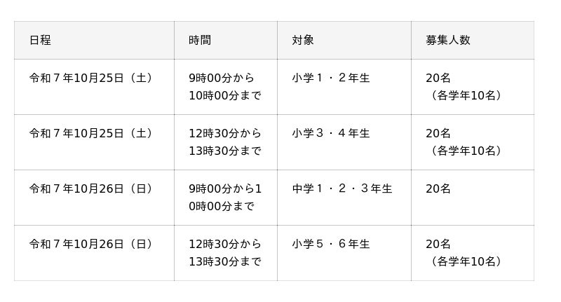 募集対象:東京都内に在住又は在学の小中学生