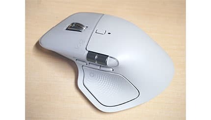既に前モデルのMX Master 3Sで操作性は完成された感があったが、細かい仕様変更により、さらなる快適性の向上にも取り組んでいる。1秒間で1000行の高速スクロールが可能なサムホイールは、本体から少しせり出したポジションに配置することで、指の接触面を拡大。ワンスクロールの回転数を高め、より効率的な操作感を実現した。