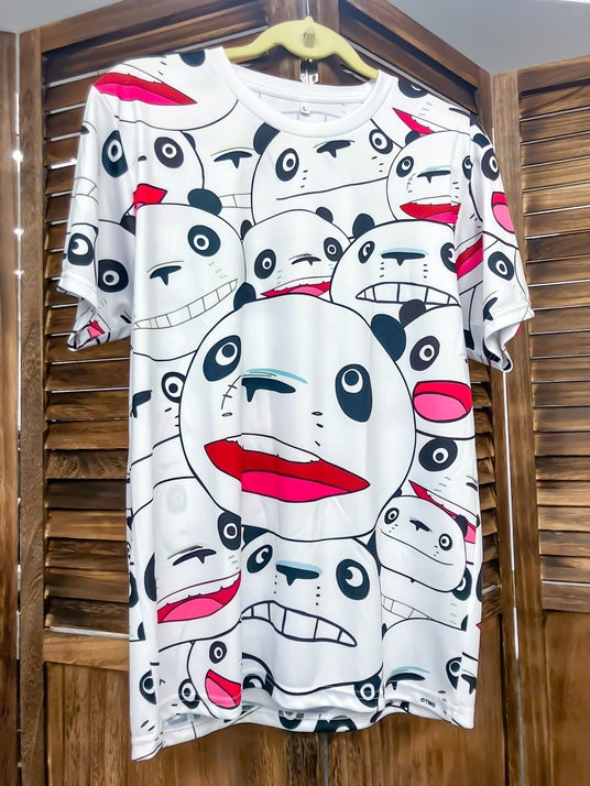 パパンダとパンちゃんのかわいい表情をたっぷり堪能できるかおだらけTシャツです。