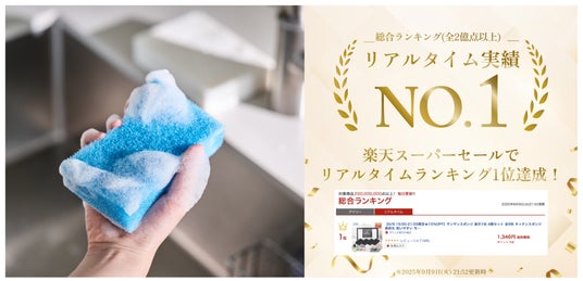 そんな「サンサンスポンジ」は口コミで広がり、今では楽天市場で7年連続キッチンスポンジ部門1位を獲得※1、2025年3月には楽天市場総合リアルタイムランキング1位を獲得※2するなど、ダイニチを代表するアイテムです。