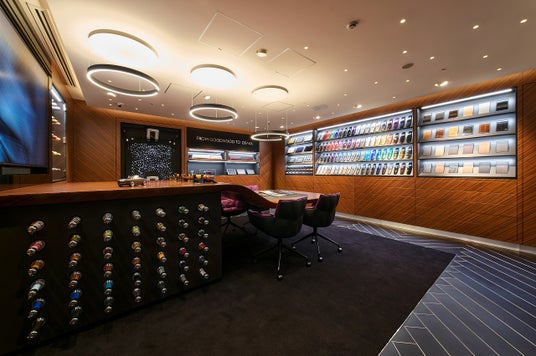 この新しい空間の核心をなすビスポークのためのスペース「アトリエ」には、色鮮やかなエクステリアのカラーパレットをはじめ、ウッドパネル、上質なレザー、刺繍糸、ラムウールやテキスタイルなど、様々なマテリアルが美しくディスプレイされています。これらの素材は、ロールス・ロイスが追求する多彩なカスタマイズの可能性を表し、訪れるお客様が自らの感性を自由に表現できる創造的なインスピレーションを提供します。