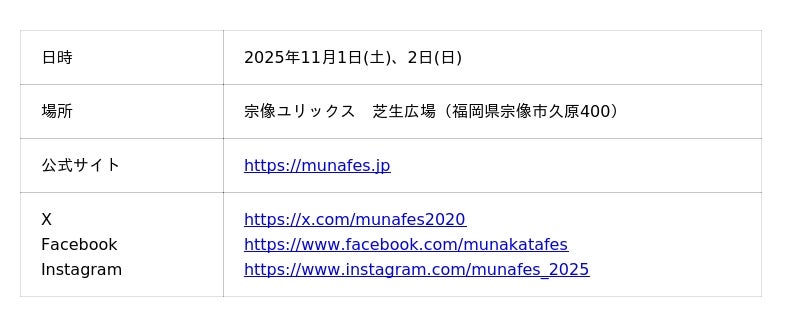宗像フェス2025 FOODエリアのラインナップを公開!!フェスを一層楽しむために欠かせない「フェス飯」のご紹介です!あったか美味しいたこ焼き、焼きそば、カレーパン★冷たいジェラードにソフトクリームと選びきれないほど充実!LIVEの合間にフェス飯グルメを堪能して満喫しましょう♪
