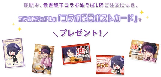 期間中、音霊魂子コラボ油そば1杯ご注文につき、コラボビジュアルの「コラボ記念ポストカード」を1枚プレゼント!