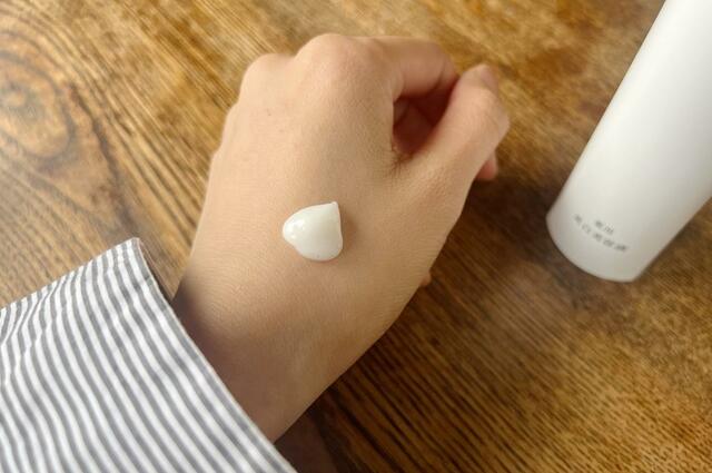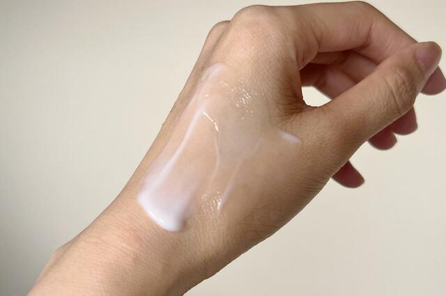 伸ばしてみると、するすると広がり肌にしっかりと密着します。肌なじみもよく、ベタつき感も控えめです。