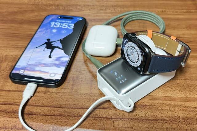 なんとケーブル要らずでスマホやApple Watchを充電できるモバイルバッテリーなんです。