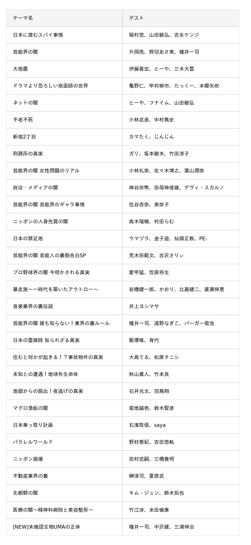 今回のテーマは「未確認生物UMAの正体」。東京スポーツ(東スポ)の種井一司さんと三浦伸治さん、小説家・脚本家の中沢健さんをゲストに招き、いつの時代も人類を魅了するUMAにまつわる数々の逸話について改めて深掘りしてその謎に迫ります。ぜひ番組をご覧ください。