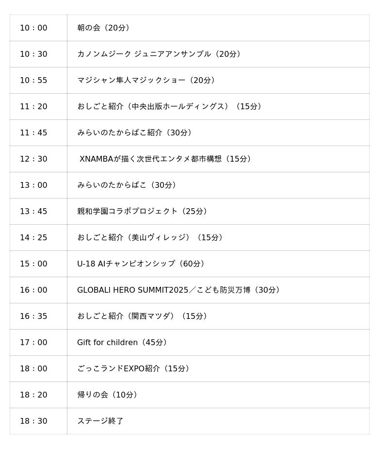 ■夢スピーチコンテスト全国の小学生を対象に「将来の夢」や「やってみたいこと」を募集し、選ばれた子どもたちがステージで発表を行います。最優秀賞に選ばれた子どもの夢の実現に向けて、こども万博実行委員会が継続的にサポートを行う取り組みです。過去には「ブロック玩具ビルダーになって等身大のロボットを作りたい」と発表した小学5年生が最優秀賞を受賞し、実際に専門家との交流が実現しました。今回のステージでは5人の小学生が登壇し、それぞれの夢を世界に向けて発表します。