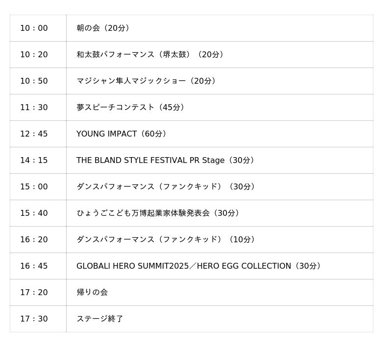 ■ ひょうごこども万博起業家体験発表会兵庫県と連携して2025年4月から9月にかけて県内5地域で展開した「ひょうごこども万博」では、自治体と地域企業が協働で子どもたちの起業家体験プログラムを実施してきました。淡路島観光ホテルでの女将・若旦那体験や海釣り、神戸ストークス(プロバスケットボールチーム)の選手の練習サポート、神戸北野ホテルでのベッドメイキングやシェフ体験など、兵庫県の地域資源を活かした多様な職業体験を通じて、子どもたちは「このお店や企業をもっと良くするにはどうすればよいか」を主体的に考えてきました。万博のステージでは、官民連携による地域人材育成の成果として、子どもたちが実体験から得た気づきと提案を発表します。
