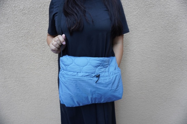 独特のキルトの柄がかわいいバッグです。今回はブルーを購入しましたが、店頭ではこの他にブラックとホワイトもありました。