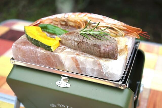 BBQコンロの網に乗せるだけで食材が美味しくなる、キャプテンスタッグの「岩塩プレート」
