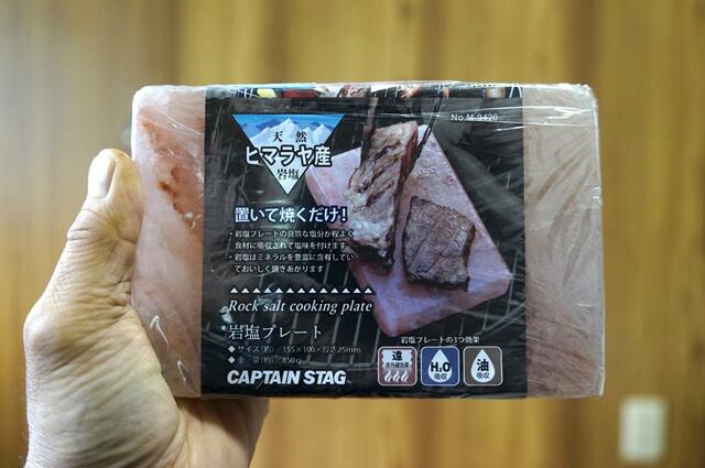 各メーカーから岩塩プレートが発売されていますが、厚みがあって丈夫そうで、コスパが良いことからキャプテンスタッグ製のものをチョイス。岩塩はヒマラヤ産岩塩を使用しています。