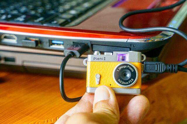 撮った写真は本体横にmicroSDカードを差し込むことで保存でき、反対側のUSBポートとパソコンを接続すれば本体の充電と画像の転送が可能です。