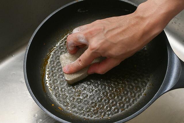 中華料理を作ったフライパンを洗うと、軽く擦るだけで汚れが落ちました!