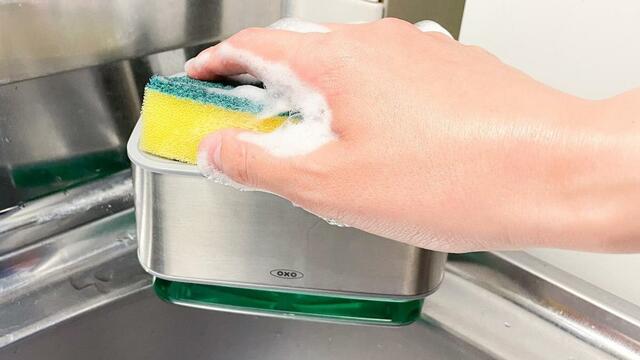 OXO(オクソー)「スポンジホルダー(ソープディスペンサー付)」3,630円(税込)
