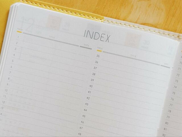 ノートページの始まりにはインデックスページがあり、端にはそれぞれページ番号が書かれています。