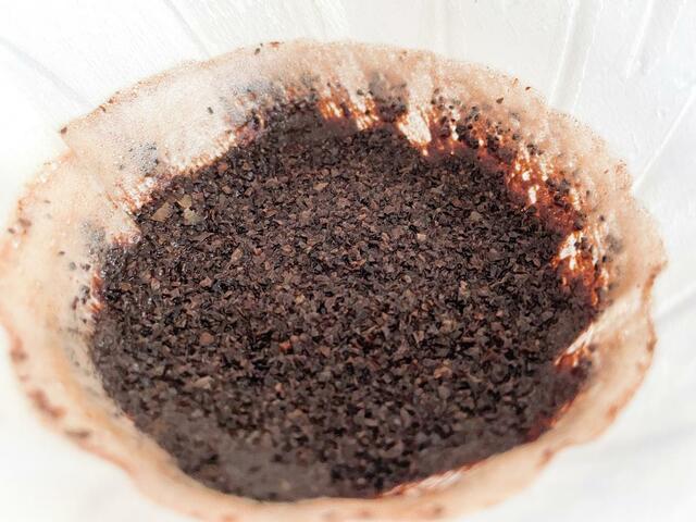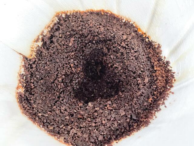 抽出後、ドリップアシストを外してみるとコーヒー粉の表面が平らになっていました。