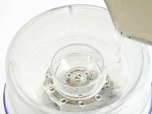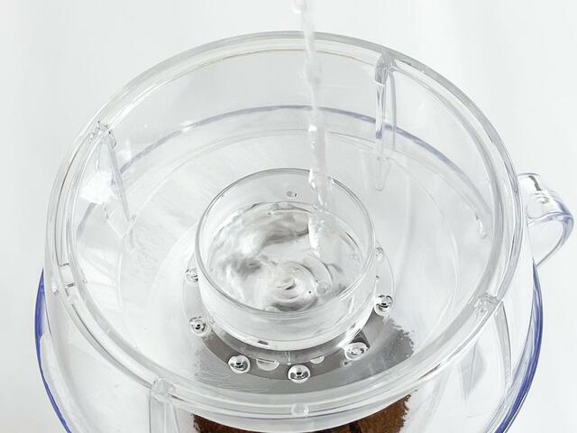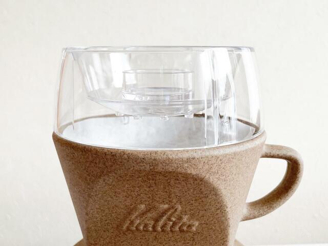 蒸らし終えたら、外側のくぼみにお湯を流し入れます。10個の穴からポタポタとゆっくりお湯が落ちていきます。