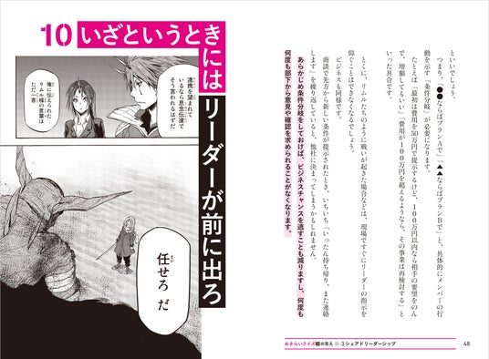 本書は、「月刊少年シリウス」(講談社)にて連載中の大人気コミック『転生したらスライムだった件』の名シーンで、企業の管理職など組織やチームをまとめる立場の人が知っておきたい「令和型のリーダーシップ」が学べるビジネス書です。