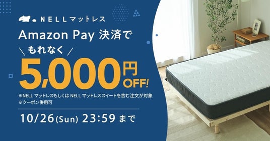株式会社Morght(本社:東京都港区、代表取締役:土井皓貴、読み:モート)が提供する睡眠ブランド「NELL(ネル)」は、2025年10月6日(月)10:00より、「NELL」公式サイトにて「NELL マットレス」をAmazon Payでご購入いただいたお客様を対象に、もれなく5,000円オフとなる「Amazon Payキャンペーン」を開催いたします。