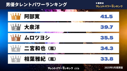 今回ランキング第398弾として、2025年5月度調査男優タレントパワーランキングを発表。