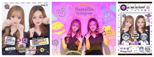 Instagramの人気機能「親しい友達」や15周年をテーマにした、お祝いムードたっぷりのデザイン全9種類を搭載