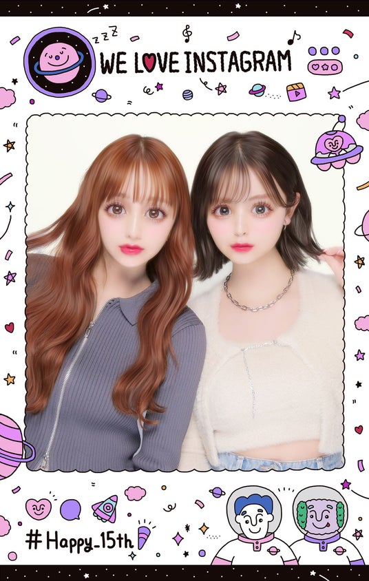 Instagram15周年おめでとうございます。Instagramは私にとって無くてはならないツールであり、イラストレーションを通じてみんなとコミュニケーションを取れる大切な場所です。今回素敵な節目にこのような企画に参加できたことを大変光栄に思っています。老若男女問わず、沢山の方にプリントシール機での思い出を残していただけたら嬉しいです!