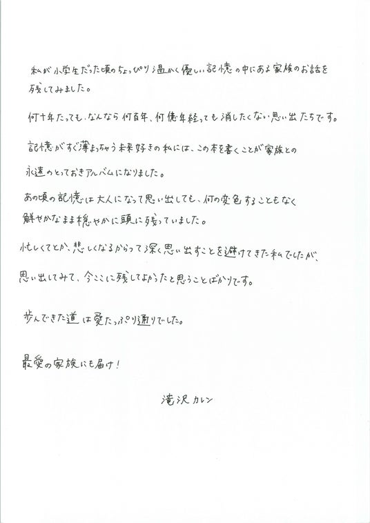 記憶がすぐ薄まっちゃう未来好きの私には、この本を書くことが家族との永遠のとっておきアルバムになりました。