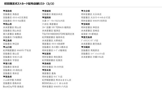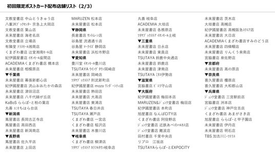全国の一部書店での購入特典として、特製ポストカードが付いてきます。ここでしか手に入らない限定特典ですので、対象店舗をご覧のうえ、ぜひゲットしてください。