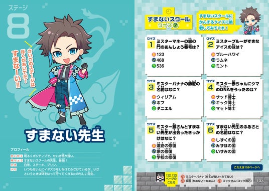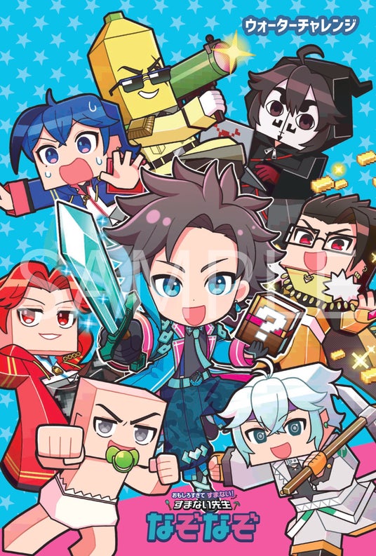本書に登場する「すまない先生」は、大人気ゲーム『マインクラフト』の舞台を中心に、さまざまな企画を配信するYouTubeチャンネル「ウォーターチャレンジ」の看板キャラクター。「すまなーーーーい!」というセリフがお決まり。正義感が強く、破天荒でコミカルな言動が子どもたちに大人気です。すまない先生の生徒「すまないスクール」の個性的なメンバーたちとくり広げる冒険やギャグ展開が大人気です。