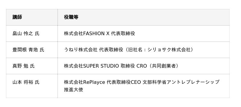 ※講義以外にオンラインでの事業アイデアへのメンタリング(個別相談)等も実施します。