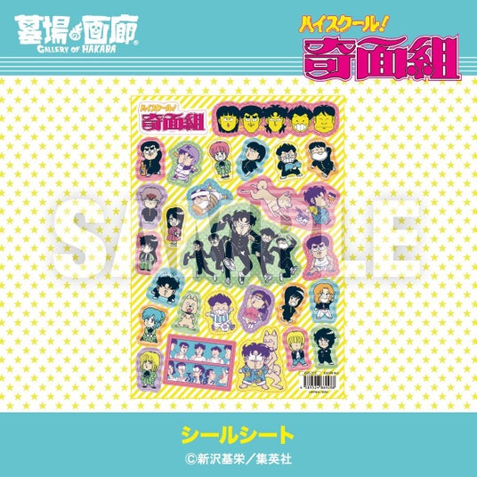 「奇面組」メンバーを中心に主要キャラクターが所狭しと散りばめられたA4サイズのシールシートが登場!奇面組といえばおなじみの二頭身化したキャラクターたちが個性豊かな姿で大暴れ!身の回りにお気に入りキャラを貼りまくろう!