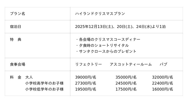 【ブリティッシュヒルズHP】https://www.british-hills.co.jp/【クリスマスイベント詳細】https://www.british-hills.co.jp/stay/news/459/