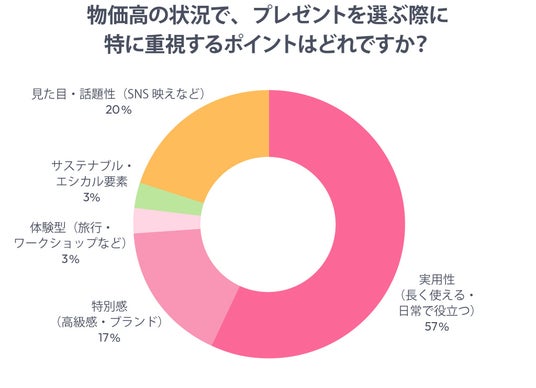 物価高の中で最も重視されるのは「実用性(57%)」でした。