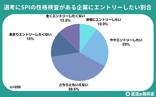 就活生の33.0%が、選考にSPIの性格検査がある企業に「非常にエントリーしたい」(10.0%)、「ややエントリーしたい」(23.0%)と回答しました。