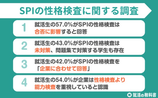 1、就活生の57.0%がSPIの性格検査は合否に影響すると回答