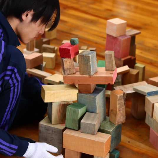彫刻家・西村拓氏を迎え、色材や立体を用いて空間を構成するワークショップを実施。形や素材が持つ力を実感しながら、生徒たちは「空間そのものをデザインする」という視点を体験しました。