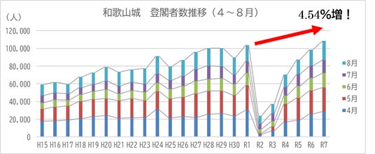 特に6~8月については単月でも過去最高を記録しており、会期が進むごとに活気がさらに高まっている大阪・関西万博が、和歌山城の登閣者数増に波及している可能性が考えられます。