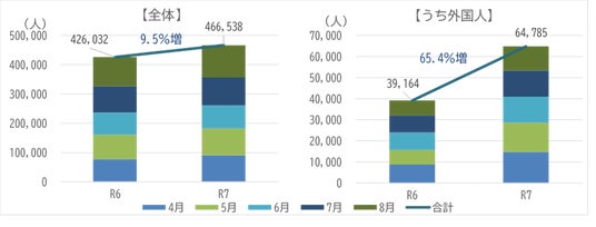 【和歌山市における4~8月宿泊客数(R6年・R7年比較)】