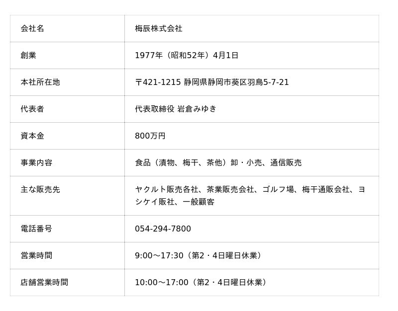 梅辰株式会社(本社:静岡県静岡市葵区、代表取締役:岩倉みゆき)は、このたび日本食糧新聞社が主催する「第13回地域食品産業貢献賞」において、ブランド商品信頼貢献部門で受賞いたしましたことをお知らせいたします。