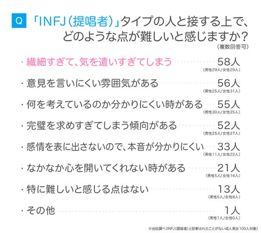 一方で、INFJ(提唱者)と接する上で難しいと感じる点もあるようです。