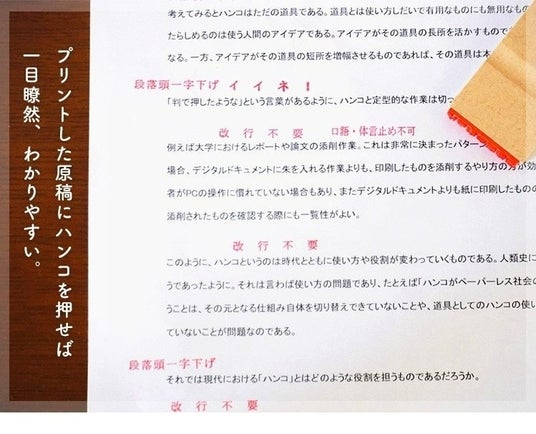 印面サイズは4×29ミリ。プリントした原稿に押すだけで、修正箇所が一目でわかります。